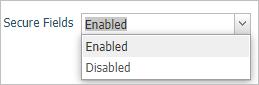 The Secure Field option gives access rights to secure fields. By default, the option is disabled. To give authorized users (those with Has Secure Field permissions) access, select Enabled from the Secure Fields dropdown list: