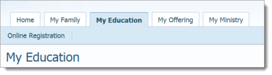 MOC Access: by default, this option is disabled so that members have no access to online registration in Religious Education. If you enable the option, the system inserts the "My Education" tab in members' My Own Church portal. The tab provides access to the online registration feature in Religious Education.