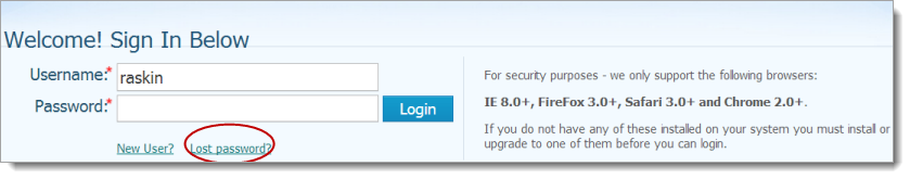 A message is displayed to inform you that your new password was set. You can now use the password to log in to your account.